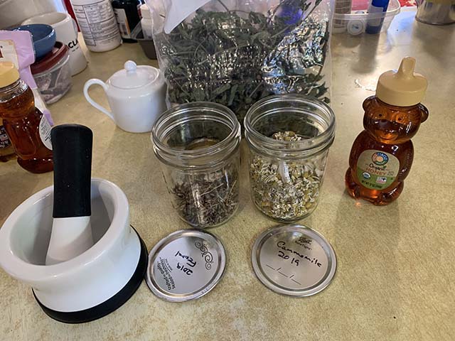 Herbs for this tea combo were raised in the garden. It brings back that special taste of summer especially when the winter seem so long and cold. Add a scone and you will round out your morning. I found my mortar and pestle on Amazon. It is heavy duty, cleans up easily and will last for a long time, I think. Add a cup warmer and you can sip away all morning.